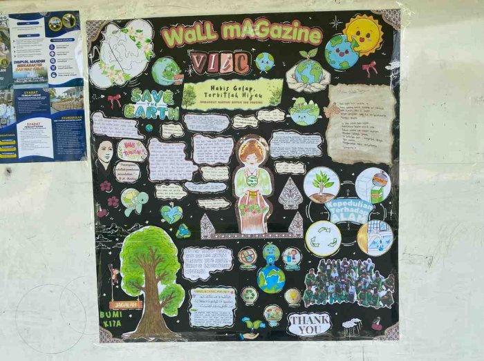 Tidak hanya berisi berita, mading terbaru juga dihiasi dengan berbagai karya siswa, seperti puisi, artikel pendek, dan gambar kreatif. Keberagaman isi ini menjadikan mading sebagai wadah pengembangan bakat dan minat siswa, khususnya di bidang literasi dan seni. Dengan demikian, siswa didorong untuk aktif berkontribusi dan mengekspresikan ide-ide kreatif mereka.