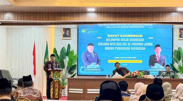 Rapat KKM diikuti oleh para kepala madrasah se-Provinsi Jambi, pengawas, serta unsur terkait lainnya. Selama dua hari, mulai 21 hingga 22 April 2026, para peserta membahas sejumlah agenda penting. Topik yang dibicarakan meliputi evaluasi program kerja, peningkatan kualitas pembelajaran, serta perencanaan kegiatan madrasah ke depan. Suasana rapat berlangsung aktif dan penuh semangat kolaborasi, mencerminkan komitmen bersama untuk memajukan pendidikan madrasah.